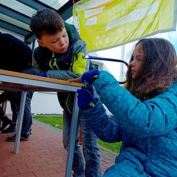 Bau der Insektenhotel für Klosterpark in Hünfeld.