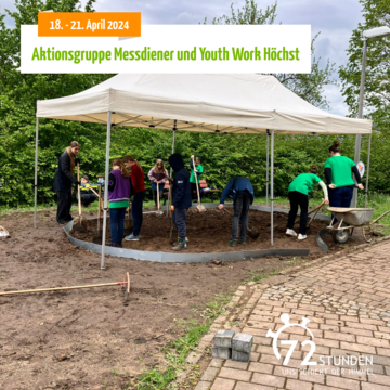 In 72 Stunden wollen wir eine kleine Fläche vor dem Kircheingang zu einem Platz der Generationen umgestalten. Hierzu treffen wir uns am Donnerstag- und Freitagnachmittag und am Samstag und Sonntags ganztags um, den Boden zu befestigen, eine Relaxliege und ein kleines Outdoorspiel (Tik-Tak-Toc) zu bauen, Stauden zu pflanzen und eine Bank, sowie ein Abfallbehälter aufzustellen.