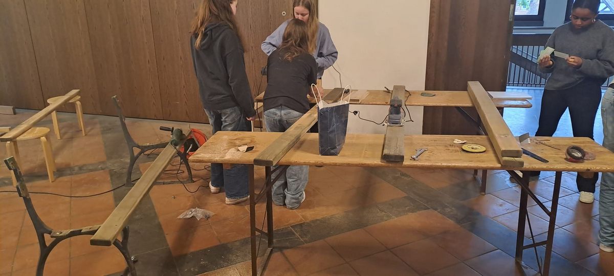 Erstens bauen und gestalten wir Bänke für die Stadt. Diese sollen dann an verschiedenen Orten platziert werden und so unsere Stadt ein bisschen bunter machen. Wir gestalten auch die Holzbänke unserer Kitas neu.