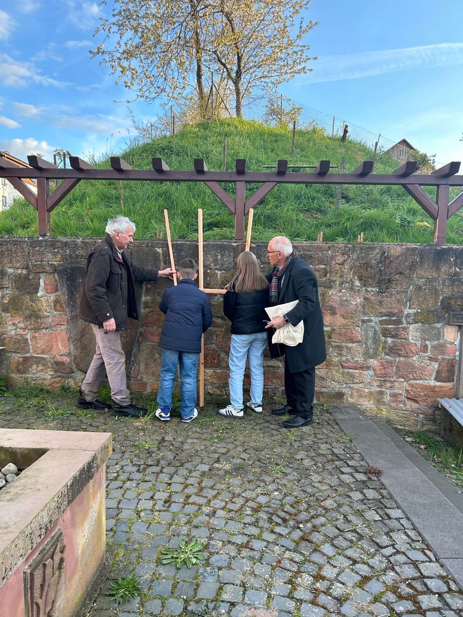 Bäume pflanzen im Kasselgrund und Bauprojekt zum Pflanzenschutz Instandsetzung des Peterskreuzes