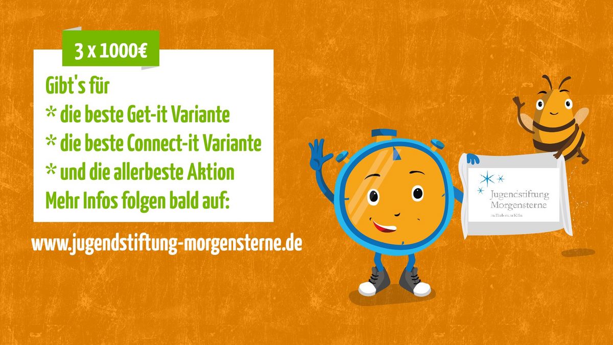 Die Jugendstiftung *Morgensterne verleiht für das beste Get-it, Connect-it und Do-it Projekt im Erzbistum Köln jeweils 1.000€. Über die Preise für die beste Get-it- bzw. Connect-it-Variante entscheidet eine Jury. Für alle teilnehmenden Gruppen, die eine do-it-Aktion durchführen, gibt es die Möglichkeit eine Beschreibung ihres Projekts im Internet unter bdkj-dv-koeln.de/Morgensterne hochzuladen. Ab dem 20.Mai bis zum 02. Juni gibt es dann die Möglichkeit Online abzustimmen. Es ist also sinnvoll bereits im Vorfeld und während der Aktion fleißig Werbung für eure Engagement zu machen und die Leute zu überzeugen für das jeweils eigene Projekt abzustimmen.